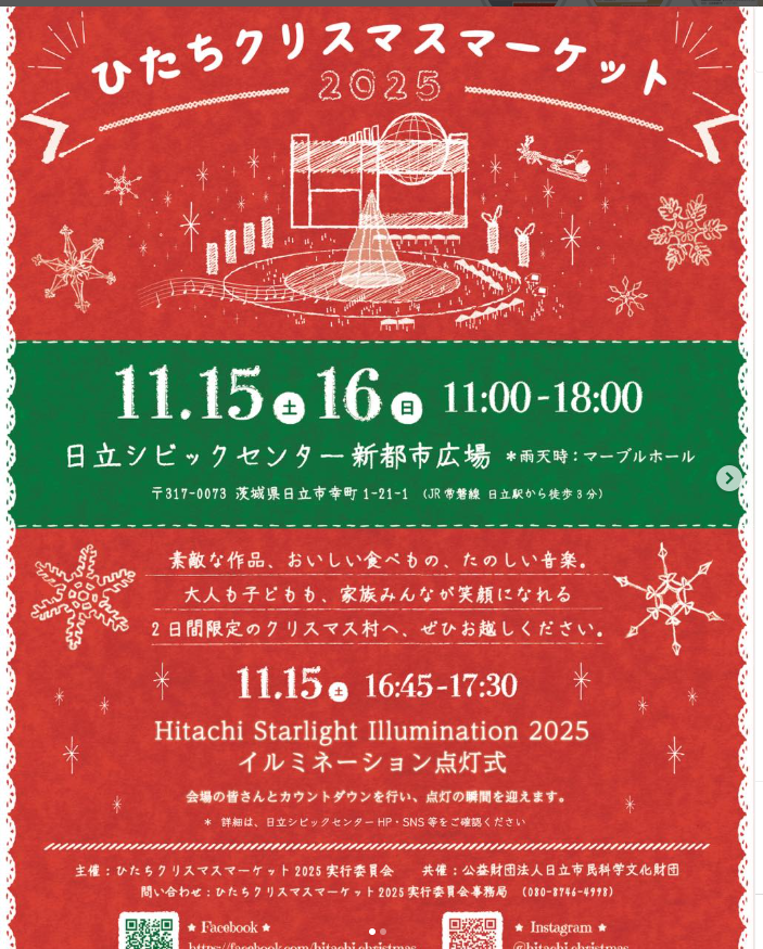 最新情報はひたちクリスマスマーケットのインスタグラムにてご覧ください。