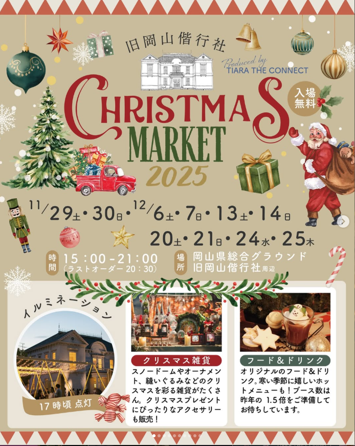 最新情報は旧岡山偕行社クリスマスマーケットのインスタグラムにてご覧ください。