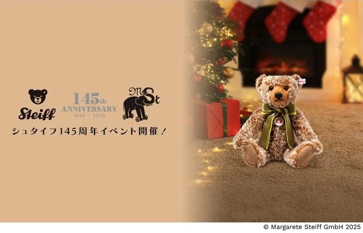 【概要】シュタイフ145周年を記念して、本館1階 中央ホールで大シュタイフ展を開催。イベントでしか販売のない作品や希少な各国限定、またディズニーやスヌーピー等のコラボレーション作品など、愛されるぬいぐるみたちが一堂に会する特別な空間をご堪能ください。